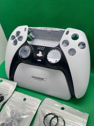 Carcasa de repuesto para mando de PlayStation 5. - Diseño en color blanco y negro. - Incluye piezas para la personalización del mando.