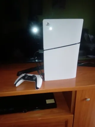 Se vende consola PlayStation 5 en color blanco, junto con dos videojuegos de regalo. - Consola PS5. - Mando DualSense. (Tiene un pequeño defecto en el botón de captura de imagen, que esta trabado aunque no perjudica la experiencia) - Muy bien cuidada, mantenimientos de limpieza, limpieza de polvo etc... - Incluye su caja - Videojuego EA Sports FC 25. - Videojuego Hogwarts Legacy. - Videojuego Spiderman sin abrir (compatible version PS5) - Videojuego Cyberpunk (compatible PS5)