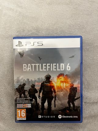 Videojuego Battlefield 6 para PlayStation 5. - Juego de disparos en primera persona. - Requiere conexión a internet persistente para jugar. - Clasificación PEGI 16.