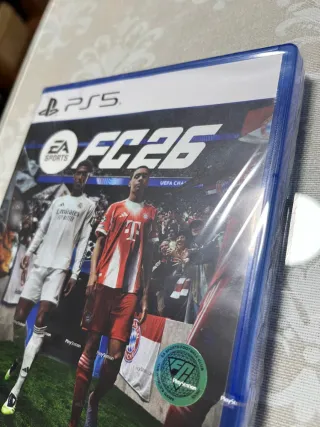 Vendo el EA Sports FC 26 para PlayStation 5. Lo pongo a la venta porque ha sido un regalo de cumpleaños, pero ya lo tenía comprado de antes. El juego está totalmente nuevo (como puedes ver en las fotos, conserva su estado original). Plataforma: PS5 (PlayStation 5). Estado: Impecable / Como nuevo. Idioma: Castellano (Voces y textos de narradores oficiales). Contenido: Incluye todas las licencias oficiales (LaLiga, Champions League, Premier, etc.) y la última tecnología Hypermotion V. Es una oportunidad perfecta si buscas el juego más actual de fútbol a un precio más competitivo que en tienda. ✅ Envío rápido: Lo pr