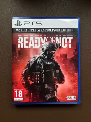 Edición Día 1 del juego Ready or Not para PlayStation 5. - Incluye Day 1 Triple Weapon Pack Edition. - Contiene un vale de PSN para el lanzagranadas M32A1, pistola Mk-V y escopeta 590M. - Clasificación PEGI 18.