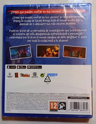 Videojuego Hello Neighbor 2 para PlayStation 5 nuevo, precintado. Caja y juego en español. 📦 Hago envíos por Wallapop, desde mi web (botón visitar web desde el perfil) o directamente proporcionando los datos de envío (previo pago). 🚚 Por web, envío por Correos (3 €) o transporte urgente (4 €), ambos con número de seguimiento. ❌ No rebajo y no me interesan cambios.