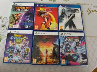 Lote de videojuegos para PlayStation 5 y PlayStation 4. - Ratchet & Clank: Una Dimensión Aparte (PS5) - Dragon Ball Z: Kakarot (PS4) - Final Fantasy VII Remake (PS4) - Dragon Ball: Sparking! Zero (PS5) - Final Fantasy VII Rebirth (PS5) - Destruction AllStars (PS5)