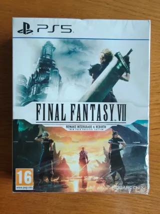 Videojuego Final Fantasy VII Rebirth para PlayStation 5 nuevo, precintado. Caja y juego en español. 📦 Hago envíos por Wallapop, desde mi web (botón visitar web en el perfil) o directamente proporcionando los datos de envío (previo pago). 🚚 Por web, envío por Correos (3 €) o transporte urgente (4 €), ambos con número de seguimiento. ❌ No rebajo y no me interesan cambios.