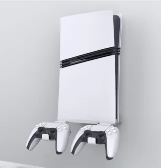 Soporte de pared diseñado para la consola PS5 Slim y dos mandos. ☆ Mejora la ventilación ☆ - Nuevo, sin usar. - Color blanco. - Diseño minimalista y funcional. - Permite organizar tu consola y mandos de forma vertical.