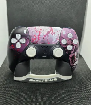 Mando de PlayStation 5 con un diseño único inspirado en el Joker. - Diseño artístico en tonos morados y rojos. - Botones frontales y direccionales en blanco. -♻️ Entregando tu viejo mando 20€ de descuento.
