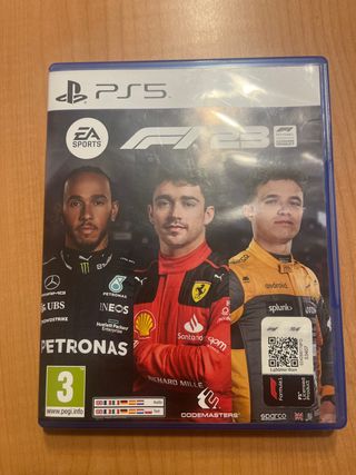 Videojuego F1 23 para PS5 en excelente estado, con muy poco uso. - Carátula con los pilotos Lewis Hamilton, Charles Leclerc y Lando Norris. - Clasificación PEGI 3. - Incluye audio y texto en español.