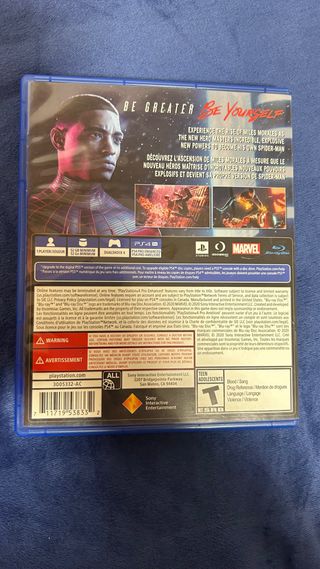 SI HAGO ENVÍOS Marvel's Spider-Man: Miles Morales para PS4, disco practicamente nuevo, sin rayones al disco, carcasa en buen estado... CUSA-17722 (Codigo CUSA exclusivo correspondiente a la version estadounidense) Se puede jugar en cualquier version de la consola, ya sea PS4 y PS5 de cualquier país. Audio y subtitulos en Ingles, Español Latino, Portugues (Brasil) y Frances. - Incluye la carátula original. - Compatible con actualización a PS5. - Videojuego Marvel Spider-Man: Miles Morales para PS4/PS5