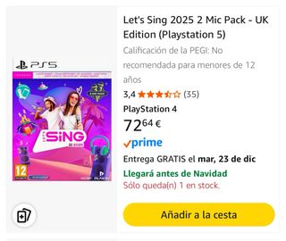 Juego Lets Sing 2025 para PlayStation 5, completamente nuevo. Incluye dos micrófonos. El juego y los micrófonos están en perfecto estado. - Juego Lets Sing 2025 para PS5. - Dos micrófonos incluidos. - Edición nueva y sellada.