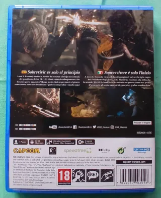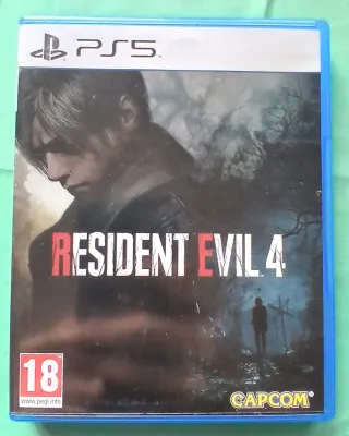 Videojuego Resident Evil 4 para PlayStation 5. - Carátula con el logo de PS5. - Clasificación PEGI 18. - Logo de Capcom.