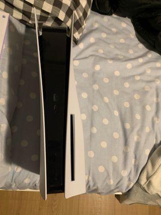 Consola de videojuegos PlayStation 5 en color blanco. - Diseño moderno y elegante. - Logo de PlayStation integrado. - puertos usb en perdecto estado - solo tiene rota la placa base