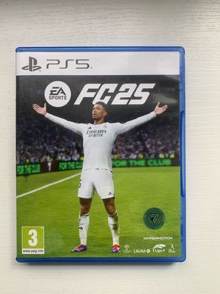 Videojuego FC 25 para PlayStation 5. - Carátula con jugador. - Clasificación PEGI 3. - Incluye tecnología HYPERMOTION. - Licencias de LALIGA y Liga F.