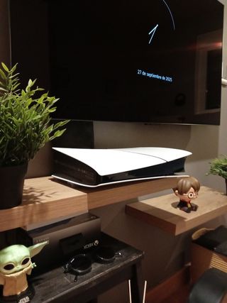 Soporte de pared para PS5 (PlayStation 5) Pro y Slim, en perfecto estado. Incluye todos los accesorios que se ven en las imágenes para una fácil instalación. - Se adapta a consolas PS5 Slim y Pro. - Material resistente y ligero. - Fácil instalación. Artículo nuevo sin estrenar. Comprado por error.