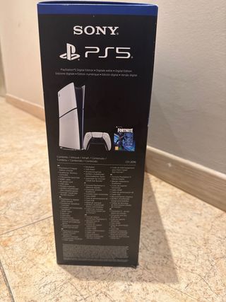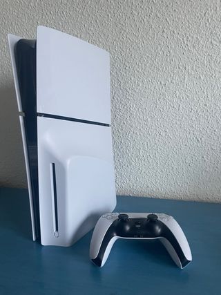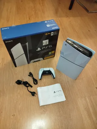 Vendo PS5 Slim con lector de discos en perfecto estado. Incluye todos los accesorios originales: mando, cables y caja. Funciona perfectamente y tiene poco uso. El mando es nuevo porque el otro se me rompió. La caja está un poco rota en la esquina superior.