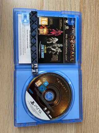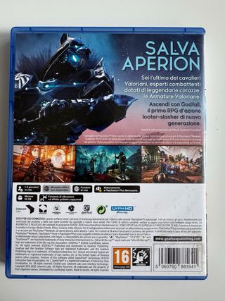 Videojuego Godfall para PlayStation 5, sin partidas iniciadas y con el código para obtener mejoras en el juego sin usar - Género: Acción, RPG. - Desarrollado por Counterplay Games. - Publicado por Gearbox Publishing.