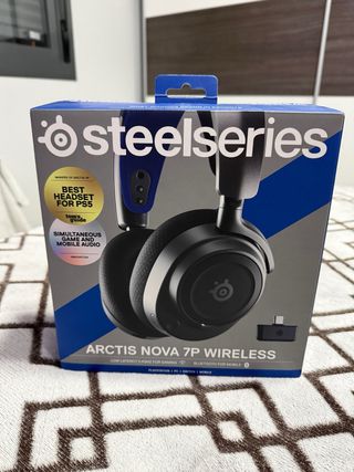 Auriculares Steelseries Arctis Nova 7P Wireless en color negro. Diseñados para PS5, PC y móvil. - Conexión inalámbrica de baja latencia 2.4GHz para gaming. - Conectividad Bluetooth para dispositivos móviles. - Permiten audio simultáneo de juego y móvil. - Reconocidos como Best Headset for PS5 por Tom's Guide.
