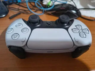 Mando inalámbrico para PlayStation 5. No tiene drift Está bastante usado ya que fue el que me venía con la consola Tiene la pieza que se ve en la última foto dañada he visto que en aliexpress no vale apenas casi nada Pero no me quiero molestar en repararlo ya que me voy a comprar uno de otro color para el que lo quiera reparar eso es lo que le pasa no tiene otro fallo Los cables de los motores están sueltos pero se vuelven a soldar y funcionan perfectamente - Diseño ergonómico en blanco y negro. - Botones de acción y direccionales. - Sticks analógicos. - Panel táctil. - Puerto USB-C.