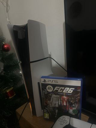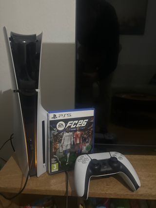 Consola PS5 comprada hace menos de 2 meses, junto con su mando y el juego FC26. - Mando DualSense blanco. - Juego FC26 para PS5.