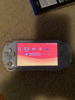 Vendo mi PSP personal de colección, es la revisión 3000, trae las mejores pantallas y batería. La batería y el cargador son originales y vienen incluidas al igual que una funda y una memoria de 32 gigas con un adaptador compatible. Funcionan a la perfección todos los botones y tiene un acabado estupendo a pesar de los años que tiene la consola. Si veis las últimas fotos os daréis cuenta que trae ya juegos ;). Para cualquier duda u oferta no dudéis es preguntar sin ningún tipo de compromiso.