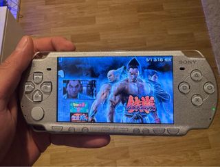 Consola portátil plateada. - Modelo PSP 2004. - Color gris plata. - Incluye cargador - Lector funcional perfectamente - Le he puesto batería nueva ya que la antigua se hinchó -Juego Físico Burnout Legendes -Juegos en la memoria de 4gb: Tekken 6, Dragon ball Shin Budokai 2, Spiderman 3, Metal Slug XX (todos en castellano) Regalo funda protectora transparente para su transporte Fotos 100% sin filtros. Vendo por no utilizar.