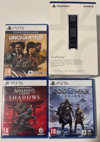 Todo precintado! Pack PS5: 3 Juegos + Cargador