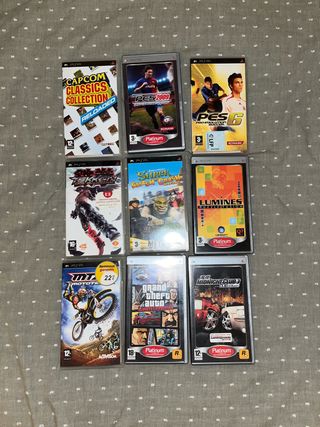 10 juegos míticos de la PSP, hay uno q no tngo caja y está dentro del “pes 2009”. Precio negociable.