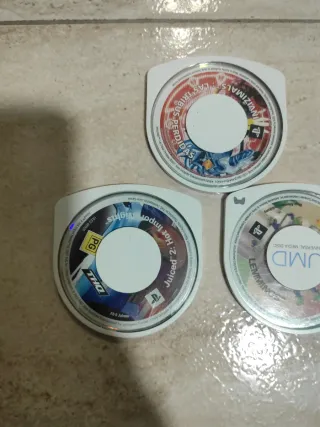 Se venden 10 juegos para PlayStation Portable (PSP) en formato UMD. Están en buen estado. Carcasas algo desgastadas, pero funcional SE VENDEN JUEGOS POR SEPARADO (5€ UNIDAD) - Incluyen los títulos: Wipeout Pure, Project 8, Hancock, EchoShift, Disney Pixar Cars 2, FIFA Street 2, Formula One 06, Pro Evolution Soccer 2010 y dos juegos más. - Los discos UMD se muestran en las imágenes.