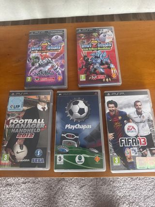 Conjunto de cinco videojuegos para PSP. -Sueltos a 10€ - Invizimals: La Otra Dimensión - Invizimals: Las Tribus Perdidas - Football Manager Handheld 2012 - PlayChapas Football Edition - FIFA 13