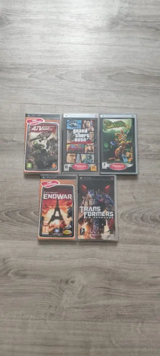 Lote de 5 juegos originales para PSP, en muy buen estado y totalmente funcionales. Incluyen caja y manual (menos Gta liberty city) GTA Liberty City Stories – 8 € Daxter – 7 € Transformers: La venganza – 5 € ATV – 5 € EndWar – 5 € Venta por separado (consultar). Entrega en mano o envío rápido.