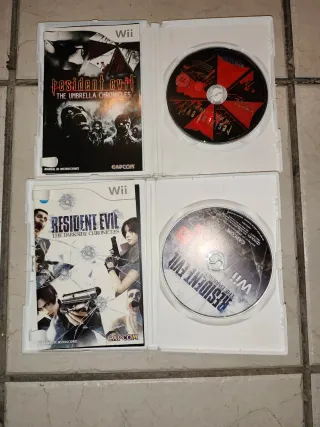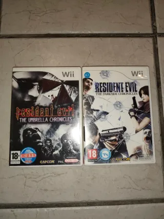 Dos títulos de la saga Resident Evil para Nintendo Wii. - Resident Evil: The Umbrella Chronicles - Resident Evil: The Darkside Chronicles Juegos completos y en buen estado No separo. Vendedor 5 estrellas envíos perfectamente protegidos. Nintendo switch Gameboy gamecube Zelda super Mario Bros wii arcade retro arcade donkey Kong wii resident evil