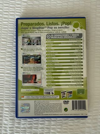 Caja del juego Singstar Pop para PlayStation 2. - Incluye el juego Singstar Pop. - Contenido del paquete: Consola PlayStation 2, 2 micrófonos Singstar, Juego Singstar Pop. - Clasificación por edades: 12+. - 2 mandos Sony, 2 mandos Subsonic, 1 mando otras marcas - 1 Memory Card de 16 MB - 1 euro-conector con sus cables. Se ha usado muy poco y lleva varios años guardado.
