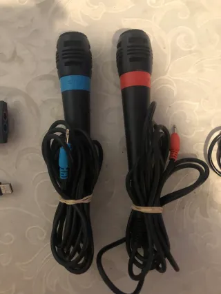 El precio 15 euros no negociable, no respondere a nadie que pida rebajas. Vendo estos microfonos con cables originales singstar para las consolas ps2 y ps3 con su adaptador usb, se pueden probar, entrego en mano en ascao línea 7 del metro de madrid calle gutierre de cetina a la altura del 97, acepto solo pago en efectivo saludos