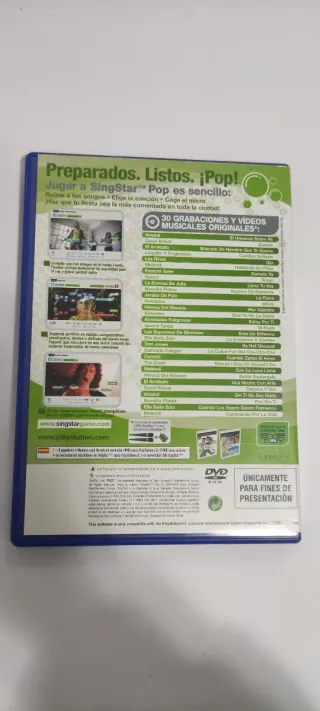 Videojuego Singstar Pop Español para PlayStation 2. - Incluye canciones de artistas como Alaska y Nacha Pop. - Ideal para fiestas y reuniones. - Contiene Lo mejor del Pop Español de los 80.