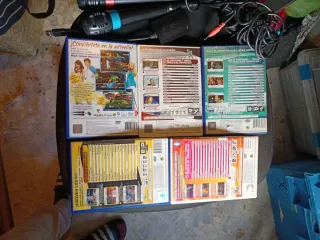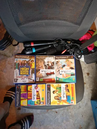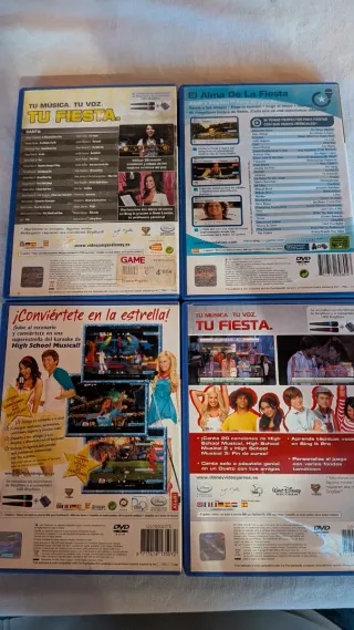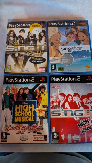 Cinco juegos para Ps2 con sus manuales de instrucciones, en buen estado general con marcas de uso habitual. Están probados y funcionan perfectamente. Son juegos que tienen todas las canciones en castellano (a excepción de dos o tres canciones). También los puedo vender sueltos, preguntar sin compromiso.