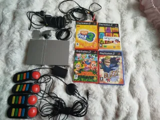 Lote de consola PlayStation 2 con varios accesorios y juegos. - Consola PlayStation 2 plateada. - Cámara Eye Toy. - Mando Eye Toy. - 4 mandos Buzz. - Juegos: Eye Toy Play 2, Singstar, Locura en la Jungla, Buzz El Gran Reto. - Cables y adaptadores incluidos. - No lleva ni micrófono ni mando porque están rotos. Acepto pago por wallapop bizum o efectivo Se envía solo por wallapop o correos