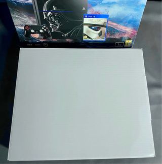 Consola PlayStation 4 Edición Limitada Star Wars Battlefront. Vendo PS4 Battlefront Edición Limitada, en perfecto funcionamiento y en su caja original, con todos los cables y documentación. Incluye: – 2 mandos (1 original + 1 mando gris extra) – 6 juegos: • Metal Gear Solid V Phantom Pain • Uncharted Nathan Drake Collection • Call of Duty Advanced Warfare • Call of Duty WWII • FIFA 2017 Just Dance 2016 Pack PlayLink original precintado Hidden Agenda, Knowledge Is Power, SingStar Celebration y Qui es tú. **juegos aún sellados** Consola cuidada, ideal para jugar en familia o con amigos. Se puede probar sin compromiso.