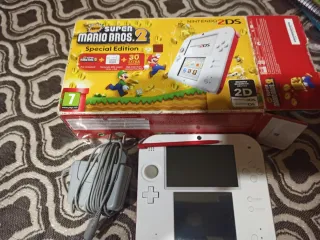 Consola Nintendo 2DS en color blanco y rojo, edición especial Super Mario Bros. 2. - Incluye juego Super Mario Bros. 2 precargado. - Incluye cargador.