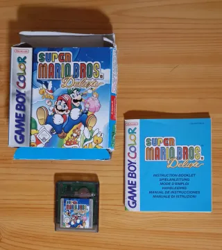 Juego Super Mario Bros. Deluxe para Game Boy Color. Un clásico de las plataformas de Nintendo. Completo, con caja y manual originales. La caja tiene desperfectos como se ve en las fotos. Cartucho y manual en perfectas condiciones. - Versión española. - Fabricado en Japón.