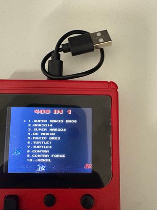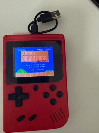 Consola portátil roja con pantalla para jugar. - Incluye el juego Super Mario Bros. - Diseño compacto y ergonómico. - Botones de control direccional y de acción.