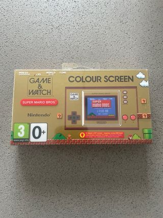 Mini consola portátil de Super Mario Bros. con funciones de reloj y alarma. - Incluye llavero. - Funciones de reloj y alarma. - Diseño compacto y portátil.