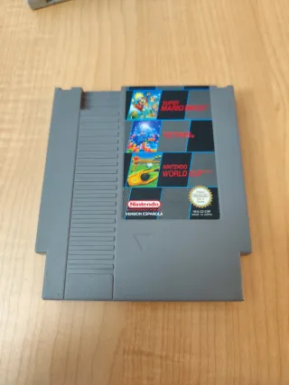 Cartucho de juegos para Nintendo Entertainment System (NES). - Incluye Super Mario Bros., Tetris y Nintendo World Cup. - Versión en español. - Fabricado en Japón.
