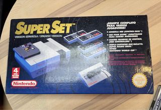 🕹️ Nintendo NES Super Set – Edición Clásica Completa ⭐🔥 - Consola NES (Control Deck) - NES Four Score (Adaptador para cuatro jugadores) - Cuatro mandos (NES Controllers) - Cartucho con juegos: Triple Crown, Super Mario Bros., Tetris y Nintendo World Cup. - Diseñado para operación en España. 💎 Auténtica joya retro para coleccionistas. La mítica NES Super Set, uno de los packs más icónicos de Nintendo en los 80. Cada vez más difícil de encontrar en buen estado. 🎯 Ideal para amantes del retro gaming y la colección. 📩 ¡Una pieza histórica que no puede faltar en tu vitrina! 🚀