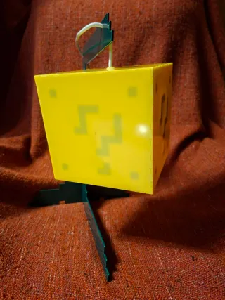 Lámpara interactiva de kickstarter con diseño de bloque de interrogación de Super Mario bros. La original. - Estilo 8-bit. - Iluminación amarilla. - Cable de alimentación incluido (puerto usb) de 6 metros para asegurar su usabilidad. - Se enciende al tocarla por la parte inferior. Super sensible al tacto, con sensor táctil capacitivo en la placa. Se activa instantáneamente con un solo dedo. - Hecha de cloruro de polivinilo (PVC), que es muy resistente. - Soporte de aluminio a juego para poder colocarla en cualquier superficie plana. - Creada por 8-bit Lit. Muy difícil de encontrar. Sin uso. Caja estropeada por almacenamiento.