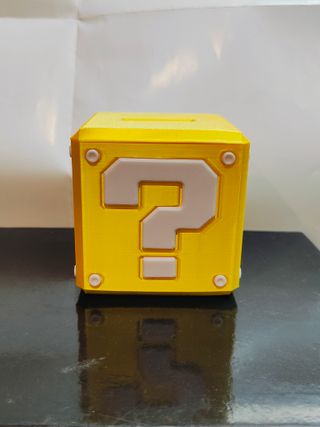 Hucha o alcancía con diseño inspirado en Super Mario Bros impresa en 3D se puede entregar mas grande o mas pequeña dependiendo del gusto de la persona! Medidas del de la foto 7.50 x 7.50 - Color amarillo. - Detalle de signo de interrogación blanco. - Tapa con ranura para monedas. #supermariobros #mariobros #nintendo #mariobrothers #nintendoswitch #nintendoswitch2 #regalo #hucha #alcancia #gratis #3d #impresion3d #filamento #PLa #resina