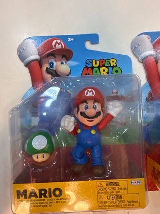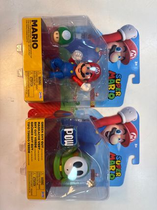 Figuras de acción de Super Mario Bros. de Jakks Pacific. Incluye a Mario y Green Shy Guy con POW Block. - Figura de Mario con accesorio de hongo 1-UP. - Figura de Green Shy Guy con POW Block. - Personajes icónicos de Super Mario. - Empaque coleccionable.