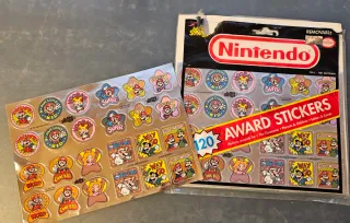 Lote de pegatinas de Mario Bros de Nintendo, año 1991. Incluye 120 pegatinas. - Diseños variados de personajes de Mario Bros. - Ideal para coleccionistas o para regalar. - Incluye pegatinas con Awesome Kid, Super, Cool Kid, Way to Go y Good Work. -Aunque está abierto conserva todas las pegatinas.