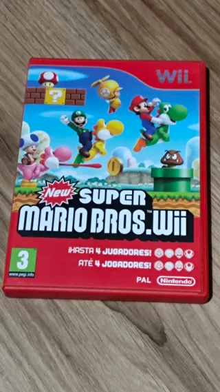 Juego completo de New Super Mario Bros. Wii para la consola Wii. La versión es PAL. - Incluye el juego y su caja original. - Perfecto estado de conservación. - Caja y disco con señales de uso.Realizo envíos y entrega en mano.No negociable.No cambios.