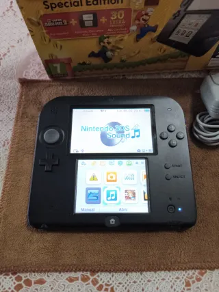 Consola Nintendo 2DS en edición especial Super Mario Bros. 2. Incluye la caja original y todos sus accesorios. - Consola Nintendo 2DS. - Caja original. - Cargador. - Manual de operaciones. - Tarjetas AR. - Tarjeta de memoria Lexar 4GB.