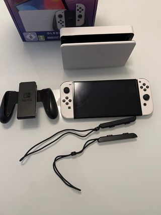 Nintendo Switch OLED Blanca con juego y mando.