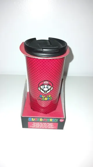 Termo reutilizable con diseño de Super Mario Bros. - Diseño temático de Super Mario Bros. - Tapa negra con apertura para beber